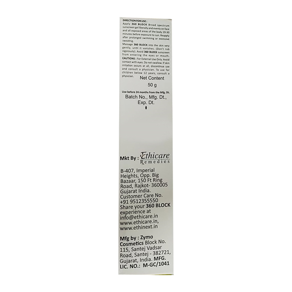 360 BLOCK SPF 50+ Sunscreen Gel 50gm
