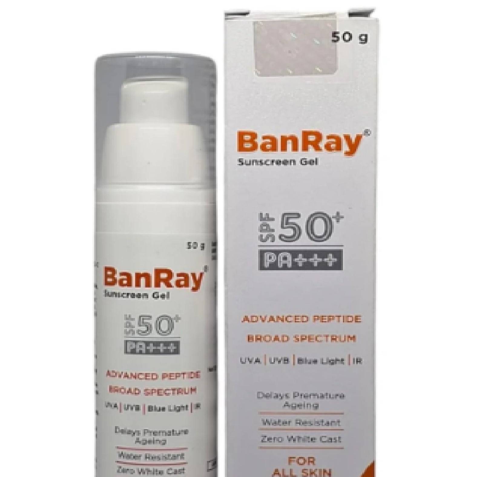 Banray Advanced Peptide Sunscreen Gel SPF 50+ PA+++ provides high-level sun protection while nourishing the skin with peptides and antioxidants. This lightweight, non-greasy formula offers broad-spectrum defense against UVA, UVB, IR and Blue Light rays, helping to prevent premature aging and sunburn. Its unique blend of ingredients promotes collagen production, delays premature ageing, hydrates the skin, and enhances elasticity, leaving the skin smooth and radiant. Ideal for daily use, this sunscreen is suitable for all skin types and leaves no white cast.