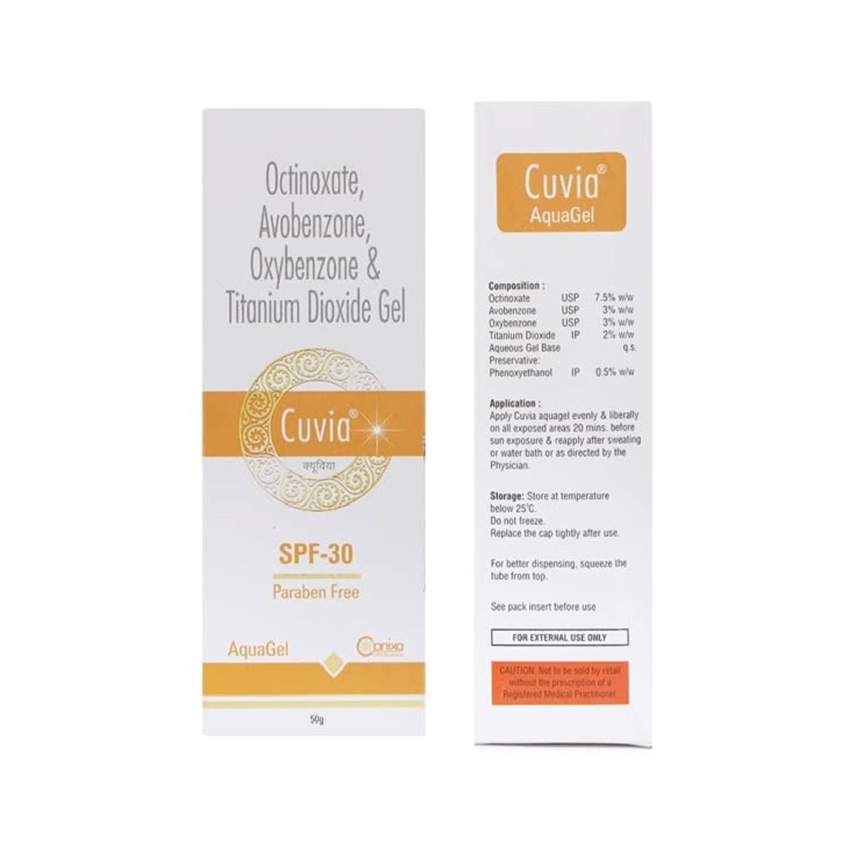 Stay protected and refreshed with Cuvia AquaGel SPF 30 Sunscreen Gel 50 g — lightweight sun care that feels great on your skin.